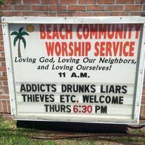 This old photo shows our church sign before our name was changed to Beach Community Church.